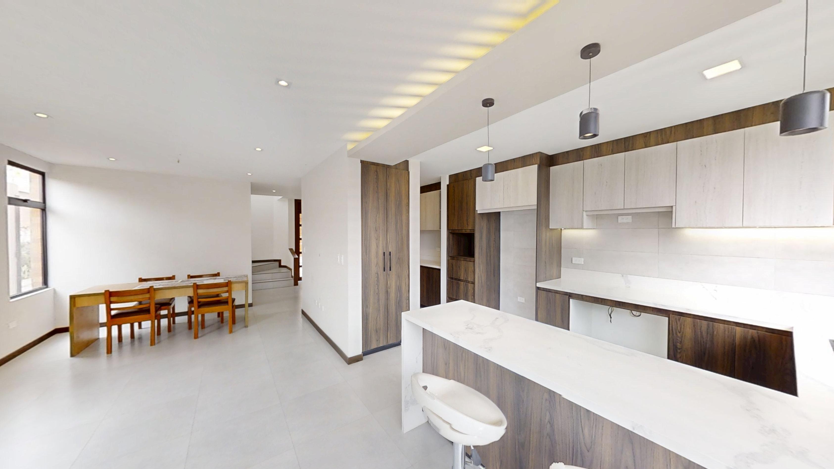 Sala – comedor • Sala de TV • Cocina cerrada • Cuarto Máster con Baño • Walk-in closet • Baño social • Baño con ducha • Área de lavandería • Cuarto de máquinas • Bodega interna • +36