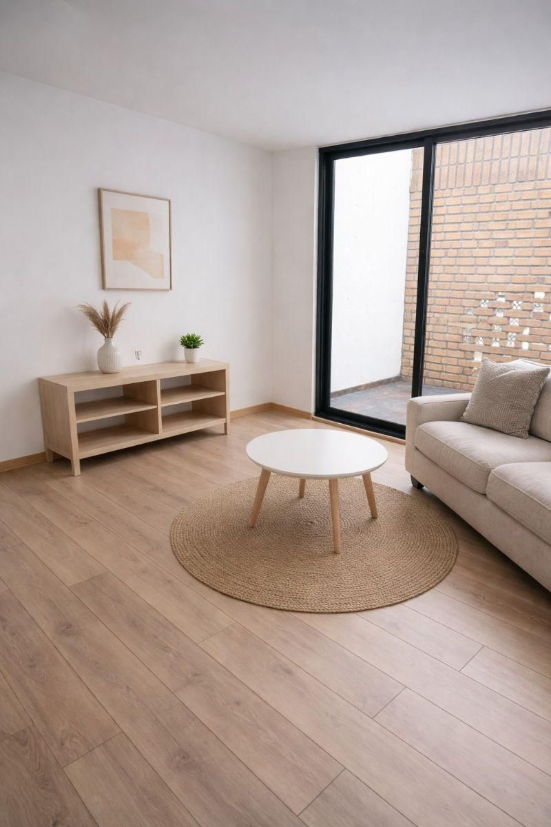 Sala – comedor • Cocina cerrada • Baño completo • Baño social • Baño con ducha • Estudio • Área de lavandería • Patio • Parqueadero descubierto • Área comunal • +17